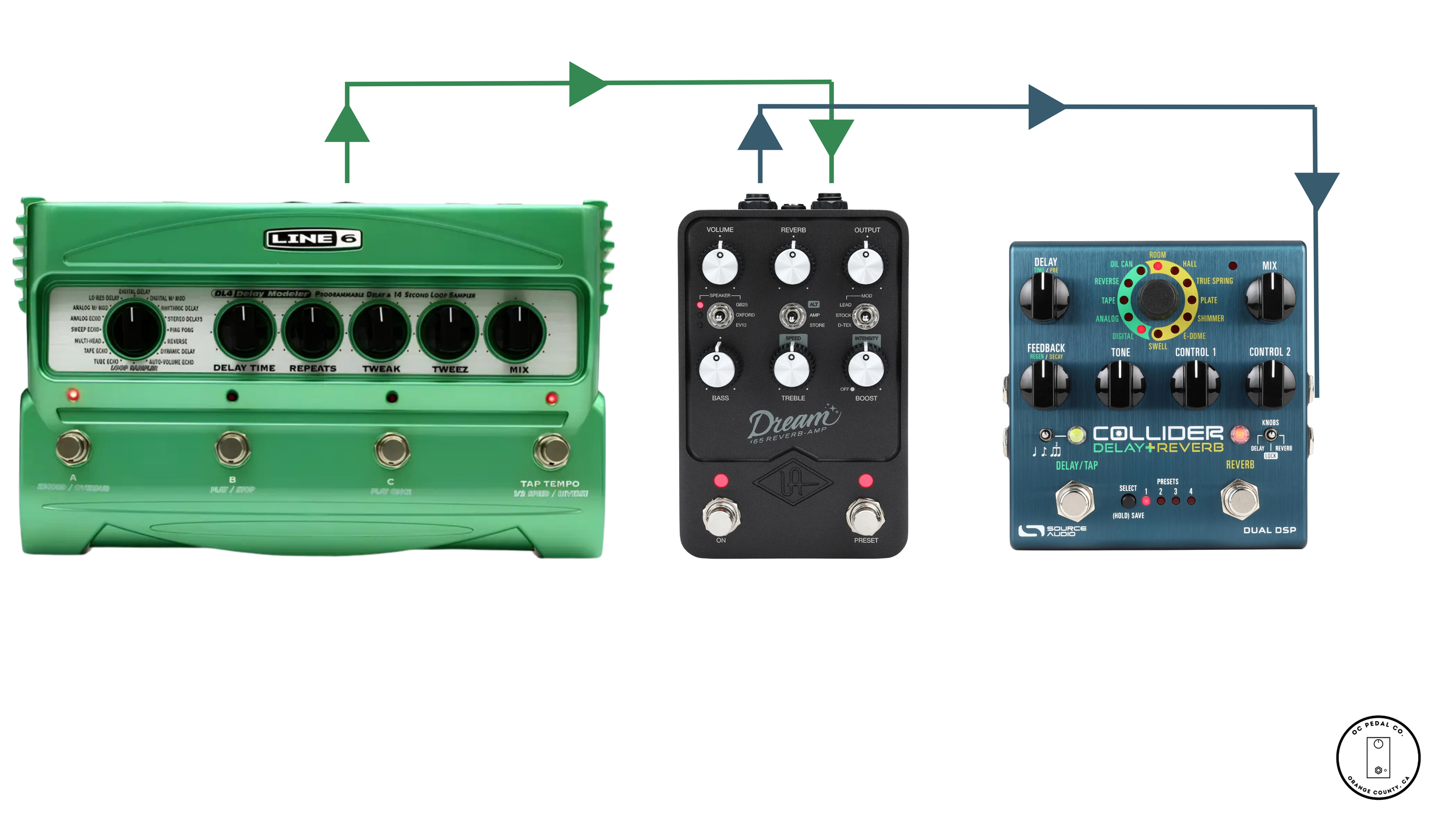 While stacking usually refers to combining overdrive and distortion pedals, you can also get interesting effects by stacking delays. You can get some cool results running delay pedals in series but its not the only effective way of stacking. My favorite delay tricks is running one delay into the front end of an amp and the other in the effects loop of an amp or after an amp modeler. This method creates a ton of dimension! The delay going into the amp’s input will be affected by the amp’s natural breakup and saturation. I love using the old DL4 by Line 6 for this since the algorithms aren’t as pristine as newer delays anyway. I place the Source Audio Collider after my modelers or in the effects loop of an amp for pristine, studio-quality delays. Running this set up in stereo is like heaven on earth! Also, you should not be afraid to experiment with different delay times and note subdivisions between the two units.